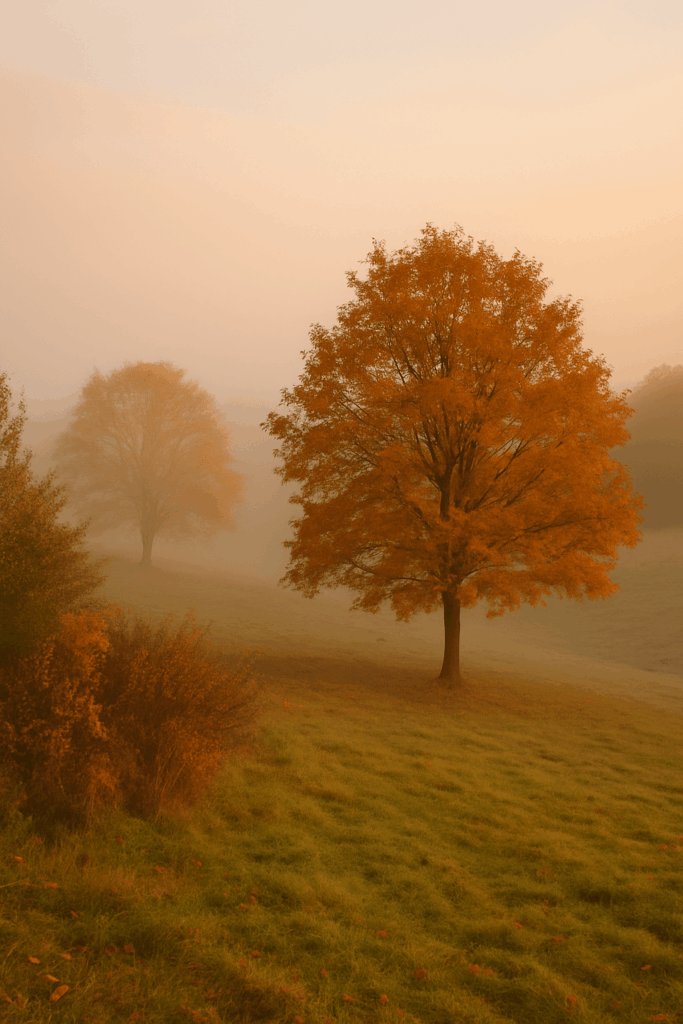 Diese Aufnahmen entstanden Anfang Oktober 2024 bei einem frühen Spaziergang durch das Haselbachtal in der Nähe unseres Hofes. Das Licht war weich, der Nebel hing noch über den Feldern und die ersten bunten Blätter lagen auf den Wegen. Ein perfekter Morgen zum Innehalten – und zum Fotografieren.